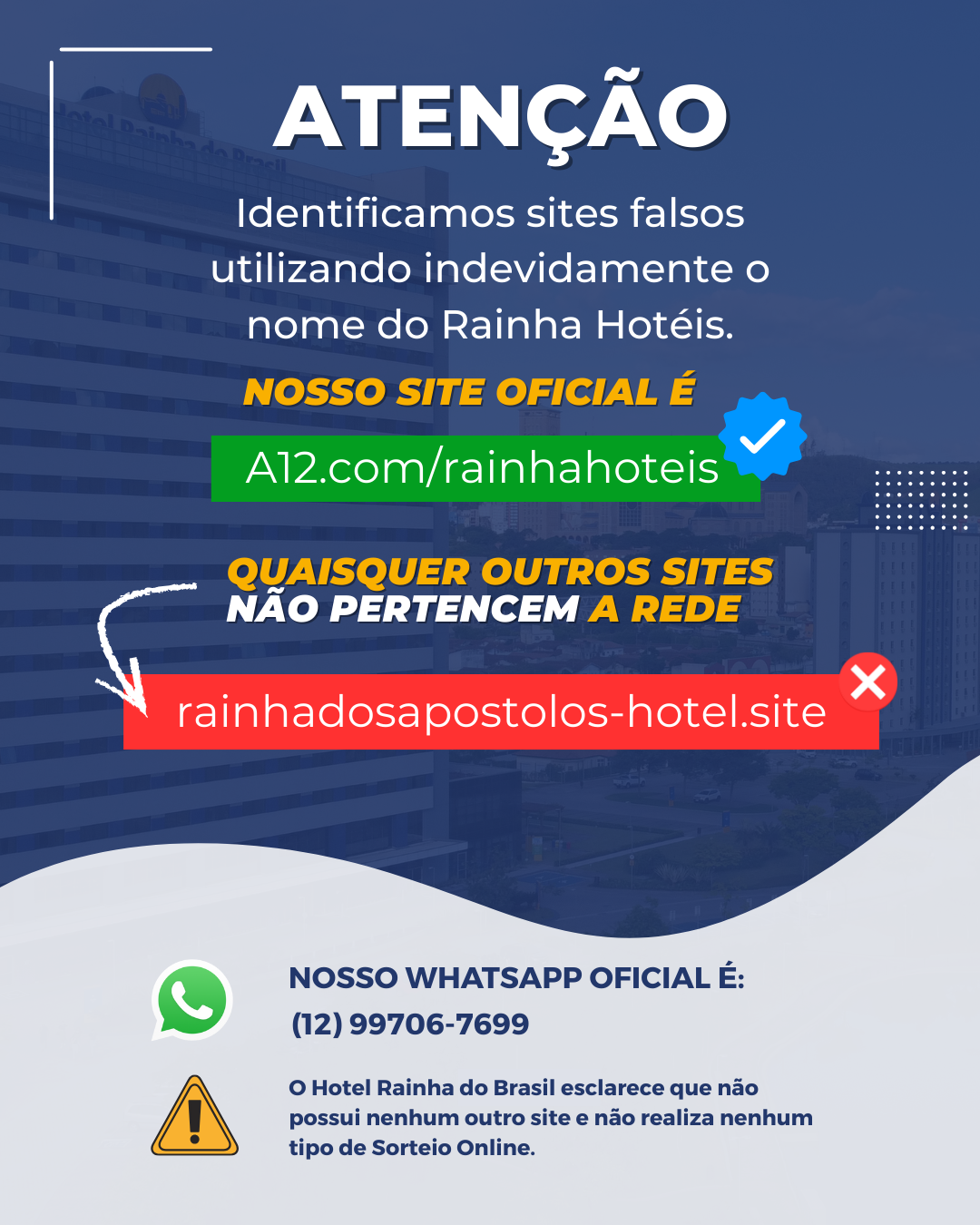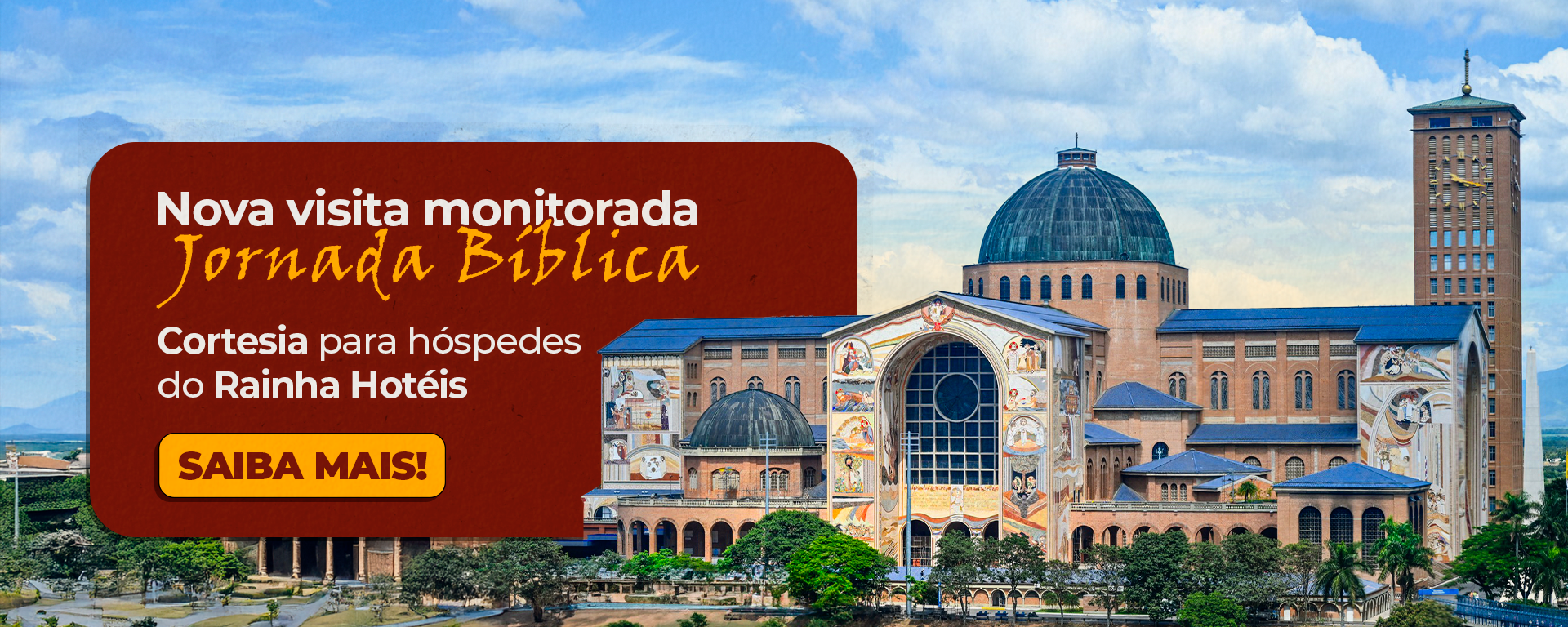O grupo Rainha Hotéis é composto pelo pioneiro Hotel Rainha do Brasil, inaugurado em 2012, e pelo Hotel Rainha dos Apóstolos, inaugurado em 2021. Ambos oferecem estadias que vão além da hospedagem, proporcionando vivências que unem conforto, cuidado e devoção em cada momento da sua visita.