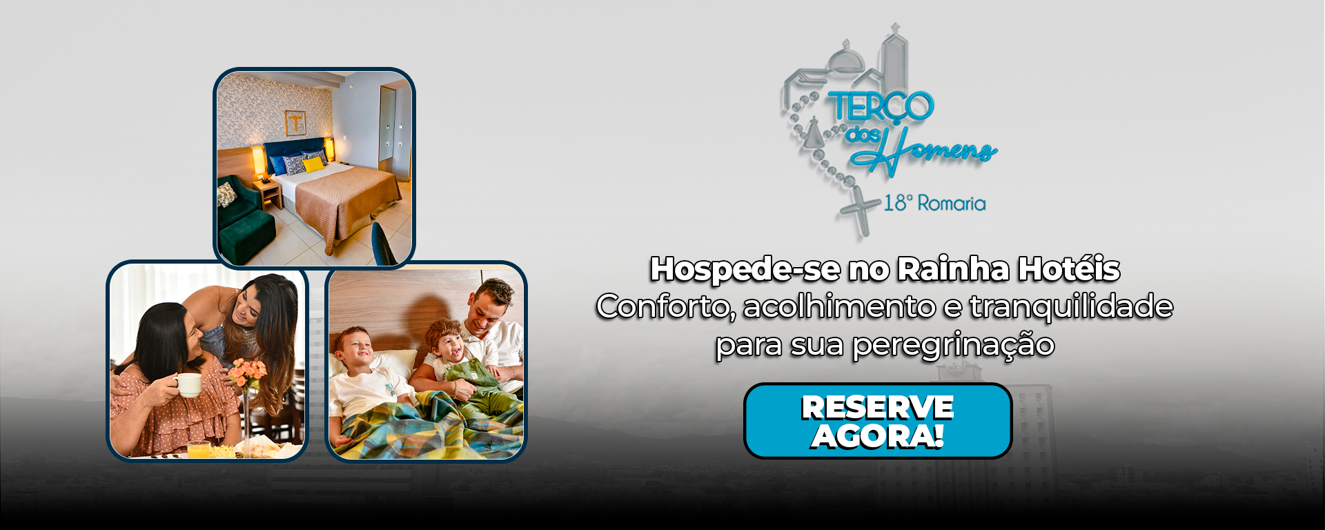 O grupo Rainha Hotéis é composto pelo pioneiro Hotel Rainha do Brasil, inaugurado em 2012, e pelo Hotel Rainha dos Apóstolos, inaugurado em 2021. Ambos oferecem estadias que vão além da hospedagem, proporcionando vivências que unem conforto, cuidado e devoção em cada momento da sua visita.