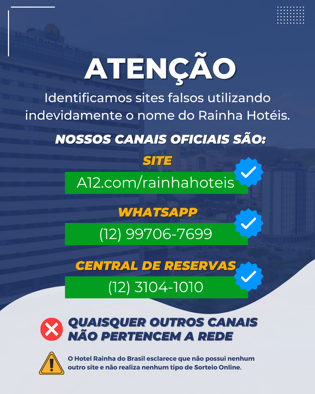 Grupos de romarias, profissionais de turismo ou de organizações pessoais possuem Condições Especiais e Vantagens na hospedagem na rede Rainha Hotéis, para o Hotel Rainha do Brasil e para o Hotel Rainha dos Apóstolos.